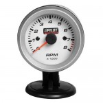 Varvmätare med blått ljus och aluminiumram. Kan monteras i instrumentbrädan eller i hållaren som medföljer. Ø 50 mm (2") 12 volt. Passar 3, 4 och 6 cylinder. Skala mellan 0 – 8 000 rpm. Ej avsedd för dieselmotorer. LÄS MER