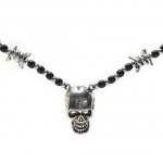 Halsband i metall med en kromad dödskalle. Storlek på dödskallen: 2,3 x 3,7 x 1,1 cm. (bredd x höjd x tjocklek). Längd på halsbandet: 53 cm. LÄS MER