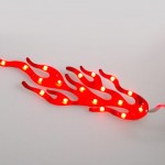 Sticker med flame-motiv av plast med led-dioder. Den har 18 st dioder som lyser med näst intill ett fast sken, diderna pilserar emellanåt med någon milisekund. Det gör att den ser ut som den blinkar, men dioderna slocknar aldrig riktigt. Kopplas till fordonets strömkälla. 12 volt. Storlek: 100 x 35 x 1,8 mm (höjd x bredd x tjocklek) LÄS MER