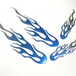 4 st kromade flames med blå toning i två olika storlekar som fästs med dubbelhäftande tejp som medföljer. Flamsen är av flexibel plast/gummi och ca 1 mm tjock. Effekten blir att när man applicerat dem så sticker de upp över ytan en liten bit. Storlek: Höjd: 3,2 cm Längd: 12,5 cm Höjd: 5,3 cm Längd: 20,5 cm LÄS MER
