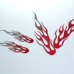 4 st kromade flames med röd toning i två olika storlekar som fästs med dubbelhäftande tejp som medföljer. Flamsen är av flexibel plast/gummi och ca 2 mm tjock. Effekten blir att när man applicerat dem så sticker de upp över ytan en liten bit. Storlek: Höjd: 3,2 cm Längd: 12,5 cm Höjd: 5,3 cm Längd: 20,5 cm LÄS MER
