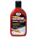 Turtle Extreme Nano-Tech Shampo är ett effektivt shampo som gör rent och ger en blank vattenavvisande yta. Har den unika "Rapid Drying" formulan som gör att sköljvattnet snabbt rinner av och att eftertorkning med sämskskinn blir minimal. Innehåll: 500 ml. Turtle Extreme Nano-Tech ger fördelar jämfört med traditionella bilvårdsprodukter. Partiklar i nanostorlek verkar på molekylnivå. De rengör på djupet med bättre resultat och med ökad vidhäftning på de ytor som behandlas. Därmed får ytan ökad glans och hållbarhet. En nanometer är en miljard-dels meter eller motsvarar tjockleken av ett 100 000-dels hårstrå. Traditionella kemikalier har mikropartiklar som är 1000 gånger större. ¿ Nanotekniken ökar möjligheten för vax att fästa samt ger en bättre och tätare kontakt med lackytan. ¿ Nano-Tech-komponenter arbetar i synergi med tensider och rengöringsmedel. ¿ Nanopartiklarna hjälper till att kapsla in de minsta molekylerna av smuts och fett. ¿ Nanopartiklarna hjälper skummet att absorbera smuts, vilket gör att biltvätten blir effektivare. LÄS MER