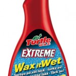 Specialvax som läggs på lacken efter biltvätt när lacken fortfarande är våt. Snabbt och enkelt. Wax it Wet är det enkla sättet att vaxa bilen. Du behöver ej torka bilen efter tvätt. Spraya på våt lack och torka av. Den unika formulan, som aktiveras med vattnet på lacken, ger ett varaktigt och glänsande skydd. Wax it Wet ger dig alla fördelar som ett vanligt vax har, men snabbare och enklare. Du får en blank bil på några få minuter! Produkten kan användas på alla sorters lacker. Ger en blank och fin yta som skyddar lacken fram till nästa tvätt. Räcker för upp till 15 bilar/vaxningar. 1. Tvätta bilen med Turtle Bilshampo. 2. Skaka flaskan väl och ställ spraymunstycket i läge spray och spraya på en begränsad yta i taget. 3. Torka med sämskskinn eller polérduk/trasa för att fördela vaxet jämnt och ta bort överflödigt vatten. Den matta hinnan torkar och försvinner av sig själv och du får ett blankt och skyddande vaxskydd. Att tänka på: – Använd ej på varma ytor. – Matta eller oxiderade ytor bör först rengöras med Turtle Color Back före vaxning. – För bästa resultat, skölj och vrid ur sämskskinnet/trasan några gånger vid vaxningen. – Spill på glas kan enkelt torkas bort med fuktig trasa. Innehåll: 500 ml. LÄS MER