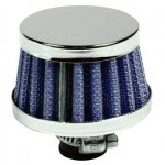 Koniskt cylinderformat vevhusfilter med krom. Fästs direkt på insuget. Rostfri stålband och adapter som medföljer. Exklusiv racing-look. Luftfiltret ger även högre effekt men hjälp av fritt luftflöde utan förträngning. Höjd: 40 mm Diameter: 60 mm Passform Ø 12 mm LÄS MER